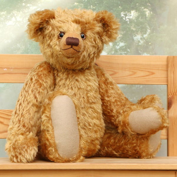 Cuthbert is an elegant yet friendly teddy bear with a very sweet character. He is a wonderful traditional bear with his long snout, arms and legs and his gorgeous, distressed mohair, but he is also a teddy bear you can hug and cuddle, he might have an aristocratic bearing but he's a proper teddy at heart, always ready to share some love and hugs.